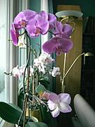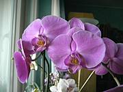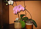 Mam cztery storczyki. Po pierwszym kwitnięciu stały cztery badylki przez kilka miesięcy. Mąż zainstalował mi nawet lampę, która przedłużała im dzień. No i wreszcie ... zakwitły, wprawdzie tylko trzy (trzeci ma pąki), ale przy moim antytalencie kwiatowo-warzywno-sadowniczym czyli ogólnie hodowca ze mnie żaden - jestem zadowolona z wyniku.