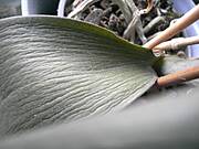 potem zacznie on zolknac, zanim da sie go oderwac troche to potrwa, ale nie robmy nic na sile... kwiat sam popusci jak nie bedzie potrzebowal juz tego liscia.