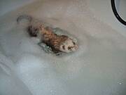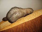 a panów lubi lizać za uszkiem ,nie wiem dlaczego tylko panów wybrała sobie ,jak się dossie to lizania nie ma końca :))).Większość dnia przesypiają za to w nocy lubią buszować.Fretki zyją nawet do 12 lat,to wszystko zależy od warunków w jakich żyją.Zanim Dina znalazła się u nas była bardzo chudziutka i wyleniała ,była zamykana w klatce i zostawiana sama sobie.Teraz lata sobie wolno ,dostaje dobre jedzonko i jest rozpieszczana przez nas wszystkich.Do spania wybrała sobie pralkę ,przed każdym praniem trzeba sprawdzać bęben czy jej tam nie ma :))))).Są to kochane zwierzątka jednak nie każdy człowiek się nadaje żeby taką fretkę mieć w domu.