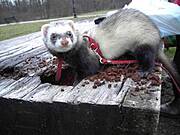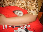 Słodka!!!! Bardzo mi sie podoba.Ciekawa jestem czy bardzo psoci biegając po mieszkaniu? i ile zyją fretki? Napisz prosze cos wiecej o tych pieknych zwierzatkach.Pozdrawiam-ata