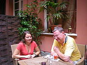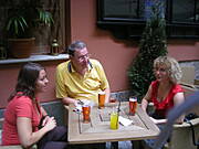 Użytkownik bea39 napisał w wiadomości: > W końcu, w końcu doszło do skutku moje oficjalne spotkanie z Lubczykiem > :).Ekkore szkoda,że nie mogłaś być. Spotkanie odbyło sie oczywiście w > ulubionej mojej kawiarence Buddha Bar.Lubczyk jak przystało na dżentelmena za > każdym razem był pierwszy i zajmował najlepsz stoliki.Ale teraz dość gadania, > zdjęcia : to ja i Agnieszka Szylar, Lubczyk jest pełnym uroku człowiekiem > sypiąym anegdotkami jak z rękawa. Zasłuchane byłyśmy nie tylko my > ale............... Mąż Agnieszki (czatowniczki zdołały go poznać :) ) Na > koniec nie obeszło się oczywiście bez podpisania słodkiej ksiązki.Bahus > wybacz, i tylko spóbuj wyciąć wątek !! I mam nadzieję na następne spotkania, > a z przepisów na pewno skorzystamy. Ja już niedługo i to z niejednego :).
