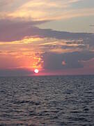 zachód słońca na pełnym morzu, widok z katamaranu