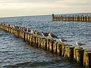 mewy na falochronach.