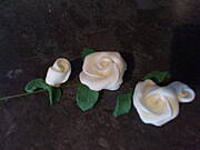 efekt u tej ostatniej różyczki uzyskałam stosujac specjalnego brokatu ktory kupiłam w sklepie z artykułami do dekorowania ciast.Wsypije go do małego pudełeczka i za pomoca waty nanosze na płatki.a to zdjecia z mojej dzisiejszej zabawy:)