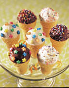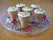 Zdjecia sciagniete z netu, wiec moze moderatorzy z czasem je usuna, bo nie sa one moje :) -wafelkowe pojemniczki na lody wypelnic do 3/4 wysokosci "lekkim" ciastem i upiec, a po wystygnieciu udekorowac;