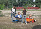Dzisiaj wybraliśmy się na kolejną i zarazem ostatnią wycieczkę na pożegnanie lata. Tym razem udaliśmy się do parku rozywkowo- grillowego znajdującego się w otoczeniu lasów, w miejscowości Białobrzegi. Celem wycieczki było rzecz jasna grzybobranie. Wszyscy z ogromnym zapałem udaliśmy sie do lasu na poszukiwanie grzybów, i mimo, że były trudności z ich znalezieniem dzieci nie poddawały się zupełnie i chętnie ich szukały . Kiedy dotarliśmy do naszego punktu wyjściowego dzieci z ogromnym apetytem zabrały się do jedzenie , by potem szybciutko stracić kalorie: jeżdżąc samochodzikami ,