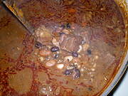 Przepraszam, ale przeszkodzil mi telefon, wiec teraz odpowiadam dalej ...:) Mysle, ze gotujemy co umiemy i co kto lubi i mozemy sie w tym watku dzielic pomyslami i doswiadczeniami. Ja wlasnie wczoraj zrobilam "jesienna zupe Patty" dzisiaj juz wczesniej zeszla z kuchenki "mexykanska fasolowka" i juz jest w zamrazalniku tak wygladala jeszcze na kuchence - przepraszam za malo estetyczne zdjecie, ale robione na zywo w czasie mieszania :)) a podawana bedzie z tartym zoltym serem. Dzis jeszcze bede robic krem z kalafiora na styl indyjski ..... i to wystarczy na ten weekend :) Mam ochote na te zupe chrzanowa, o ktorej wspominasz, czy robisz ja z przepisu Wkn czy tez masz jakies wlasne "tajemnice" ;)) ??? Oczywiscie bede musiala koniecznie zrobic grzybowa, ktora Charlie nie znal ale dzieki mnie bardzo polubil. Syn przeslal zamowienie na ogorkowa :))) i to narazie tyle :)