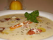 Oczywiscie, ze Cie nie przekonalo, bo ja to tak glupio napisalam, na skroty, bo Charlie nade mna wisial jak diabel nad dobra dusza :) Wiec ja ta zupe po ugotowaniu wlewam w takie czarki jak np. cebulowa i tam wlasnie wrzucam jajo i ser i to wszystko do goracego piekarnika i w ten sposob zoltko sie lekko zetnie i ser stopi i jest super, albo moze nie .....moze my tylko takie lubimy. Ta wlascicielka restauracja jest tez rodowita slowaczka, wiec mysle, ze wie co robi (???) a moze przepis jest lekko zmodyfikowany na tutejsze potrzeby, lub ze tak powiem "dla wygladu" ...tego juz nie wiem, ale taki przepis od niej dostalam i tak robie :)))