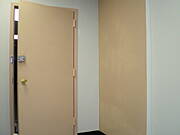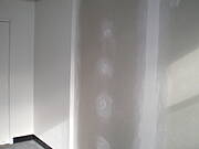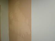 Ten wlasnie wygladajacy "mokro" kawalek jest dobudowany z lekkim "uskokiem" (widac na zdjeciu) do scianki przy wejsciu (po lewej widac rame drzwi wejsciowych) i wlasnie dzieki tej dobudowanej czesci podzielilam calosc na pokoj zabiegowy i poczekalnie.