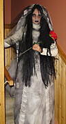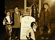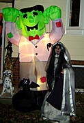 Robi wrazenie:-).Ja nie przepadam za tym swietem.Domy z daleka strasza, jakies trupy z ziemi wystaja, wisielce na drzewach w oknach jak dla mnie okropnosc brrr.Co innego jak to sa jakies smieszne czarownice, koty, wesole dynie czy cos w tym rodzajow, ale "noc zywych trupow" to nie dla mnie.W zeszlym roku, mlodsza przebrana byla za slonika, starsza za czarodziejke.W tym roku obie chca byc wrozkami:-).Z racji tego ze na naszej ulicy jest mnostwo sklepow, przyjelo sie ze dzieci nie chodza od domu do domu tylko od sklepu do sklepu za cukierkami:-)