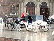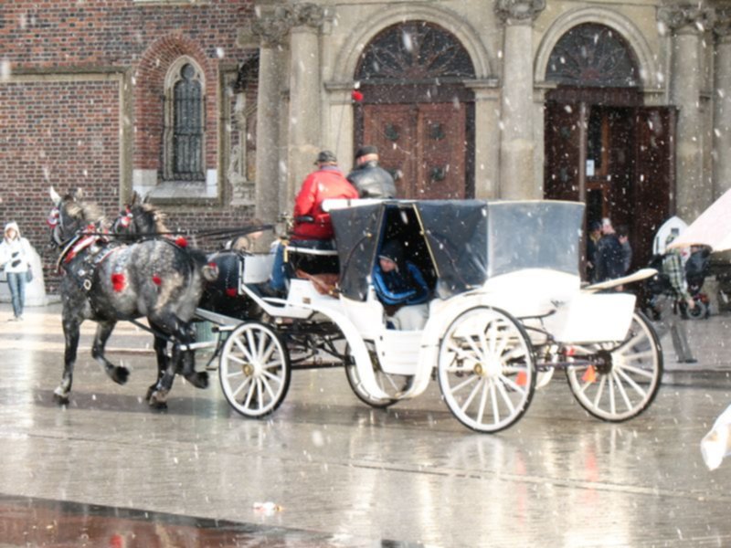 Nawet trochę zazdroscilismy tym turystom, którzy schronili sie w takim powozie jeżdżącym po Rynku