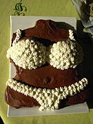 Ja robie biusty moich mulatek z budyniu czekoladowego :) w wyplukanych zimna woda pucharkach, pozostawiam budyn na kilka godzin do dobrego ostygniecia.. min. 4 godziny. Potem oblewam ja kremem, juz na ciescie. A najwieksza przyjemnosc to ubieranie mulatki w bielizne.. kazda wychodzi inna!!! Pozdrawiam :) i dziekuje za mile slowa :)