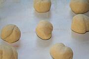 Z ciasta uformowac walek o dlugosci 40 cm. Walek ten podzielic na 16 kawalkow o dlugosci 2,5 cm. Z kazdego kawalka uformowac kulke. Przykryc je sciereczka. Kazda kulke nakladamy na dlon i formujemy z niej miseczke, na jej srodku kladziemy lyzeczke farszu, skladamy brzegi razem i skrecajac palcamy laczymy je. Przykrywamy je wilgotna sciereczka, zeby ciasto nie wyschlo. Babmusowe naczynie do duszenia wylozyc papierem do pieczenia i ukladac na nim buleczki laczeniem na dol. Garnek napelnic woda i ja zagotowac. Naczynko bambusowe nakladamy na garnek i gotujemy na parze ok. 20 minut.
