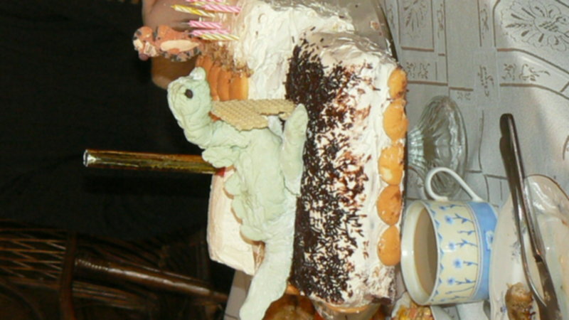 Dinozaur jest śliczny,mój syn gdy był dzieckiem też miał okres fascynacji dinozaurami .Wtedy taki tort sprawiłby mu ogromną frajde.Dla mnie pomysł na dziesiątkę.