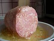 a pilonować było warto by uzyskać takie efekty i jeszcze jedna fotka Szynka wspaniała w smaku w delikatnej i smakowitej galaretce ,która zapobiega obsychaniu. Takiej w sklepie nie dostaniecie. Wiem mogłem zrobić zdjęcia na czymś ciekawszym a nie w talerzu, ale nie to jest najważniejsze. Najważniejszy jest efekt końcowy, który może i ucieszy wasze oczęta. Jeśli ktoś ma ochotę popróbować tak zrobionej własnoręcznie szynki służę przepisem. Szynkowar można kupić np. na Allegro. A i najważniejsze z kilograma surowego mięsa wychodzi ok 80 dkg szynki, a nie jak tej sklepowej 2kg. Pozdrawiam i życzę smacznego. Tomasz.