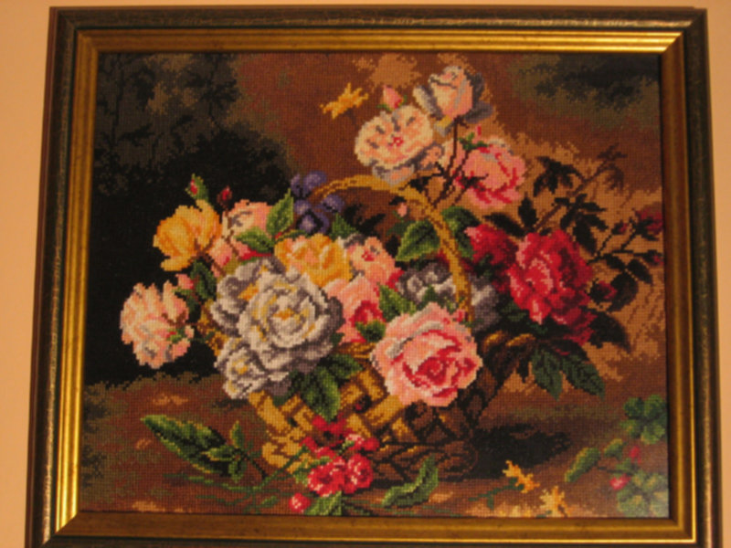 Piewszy wcześniej wyszyty, ale oprawiony dopiero teraz. Drugi martwa natura , trzeci domek marzeń.