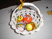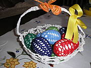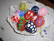 Przedstawiam Wam moje ozdoby wielkanocne, które wydziergałam szydełkiem. Jajka są plastikowe i styropianowe obrobione kordonkiem. Koszyczki usztywniłam w Łudze. Jak Wam się podobają?
