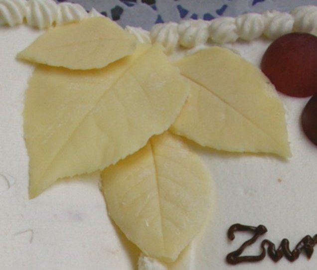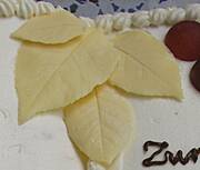 Liscie z roz, pomaluj na dolnej stronie grubo czekolada, dobrze schlodz..i poptem liscie odciagnij.... Zostana Ci czkoladowe liscie do zludzenia przypominajace oryginaly. Zrob takich duzo, i udekoruj nimi caly tort... bedzie ekologicznie i zjadliwie :) Mozesz je zrobic z gorzkiej i mlecznej oraz bialej czekolady :)
