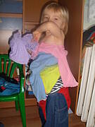 No i drugi problem(moze sla kogos smieszny)ale mi juz rece opadaja Mianowicie moja ta sama corunia ma dziwna manie-przebierania sie...robi to nawet 8-10 razy dziennie,wyciagnie ubranka jak wiadomo w tym wieku dzieci tak jedza ze czesto brudza sie,a ja tylko piore,piore,piore i piore..prasuje,prasuje i prasuje.Wyciaga z szafki co popadnie i wkłada na siebie pochodzi poł godzinki sciaga leci do innej szafki i co innego nakłada.Nie mam mozliwosci zamkniecia szafek,zeby nie wyciagała..,jest cwana i wyciaga ubrania swojej starszej siostry albo moje i na siebie tez ubiera.Naprawde jest to bardzo uciazliwe,porafi o godzinie 15 załozyc pizamke albo ostatnio moje rajtuzy-kabaretki a tu dzwonek do drzwi ..listonosz.Patrzył na mnie i na nia jak na kosmitów.Przestałam juz układac jej ubranka bo bym musiała to robic pare razy dziennie..zakazy i mowienie ze nie wolno nie dzała na nia wogole..nie jestem zwolennniczka dawania klapsow i dzieci nie bije choc raz dostała klapsa i tak nic nie dało.Ubranka jak zdejmie rzuci gdzie popadnie ,wyciaga nastepne..juz nie mam siły,naprawde dla mnie to wielki problem ...dziwna mania .Moze ktos spotkał sie z czyms podobnym i podpowie co robic...Pozdrawiam