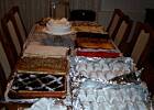 Podziwiam, gratuluję i mam nadzieję, że wystarczy Ci sił na uczestnictwo w całej uroczystości. To wielka satysfakcja przygotować własnoręcznie wszystkie smakołyki (też to przerabiałam - tyle, że dawno temu...) ale do dzisiaj pamiętam zmęczenie i cały kołowrotek związany z przygotowaniem... Tort jest piękny, wszystkie ciacha i ciasteczka apetycznie kuszące ale co się kryję w tych zawiniątkach przykrytych białą szatką ? Zdradzisz ? Życzę udanej imprezy a Twojemu dziecku roli najważniejszej osoby w tym dniu i niezapomnianych przeżyć...:)))