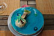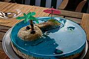 Ja planuję zrobić taką lagunę z napoju Power Rade (taki niebieski), dodam do niego żelatynę i myślę, że się zsiądzie (przynajmniej mam taką nadzieję:-))