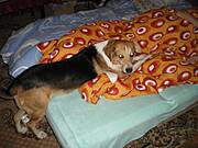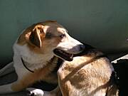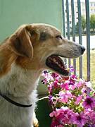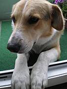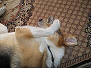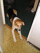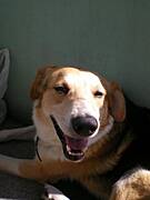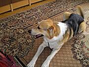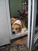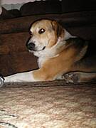 Zobaczymy, jeszcze tydzień-dwa poczekamy. Może bardziej poczuje się "pełnoprawnym" domownikiem. Jest to prawdopodobnie krzyżówka z "biglem" (nie wiem czy dobrze wpisałem nazwę rasy) i jesli tak to ...nieomal kocie nawyki: chodzić własnymi drogami i chce by gogłaskać i drapać do "upadłego" ...ale osoby wykonującej te czynności na rzecz leżącego bysia.