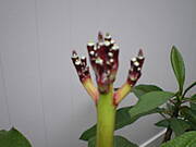 Beatko, szkoda, ze tylko my dwie mamy zabawe z tym moim kwiatem :)) ale bawimy sie dobrze, wiec wklejam zdjecia z kolejnego etapu: Jak widac na zdjeciu ten slupek z kwiatostanem wyrosl juz tak wysoko. A tutaj zblizenie samego czubka, jak widzisz wyrastaja z niego takie odnogi i na kazdej z nich bedzie osobny kwiatuszek :))) Ja chyba pypcia dostane zanim to rozkwitnie :)))