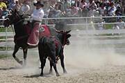 To jest w Kanadzie, moze ze zobaczylas byka to sie cosik pomylilo. Moim ulubionym zawodem to wlasnie cowboye na bykach...musza jak najdluzej utrzymac sie na takim byczku, na tym rodeo to 8 secund byl najlepszym czasem hi hi.