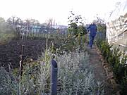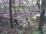 Dziejszy wypad na działkę, piękna pogoda, taki dla dokonania lustracji przez Naczelną spowodował skrócenie coroczne winorośli. Zona przy okazji zobaczyła nowe nasadzenia: porzeczki czarne wysoka i niska, tak samo czerwone, gruszka azjatycka, jeszcze jedna brzoskwinia i kiwi (odmiana samoopylna). No i orzywiście kilka róż wycięto do wazonika. Bos przez ten czas ustawiał się do fotki