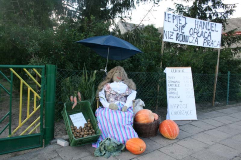 Może skorzystasz z pomysłów rolników z Wielkopolski :))) Mam wrażenie, że chopy wiedzą jak się bawić w dożynki :))))))) musiałabyś się ino o słuszną porcję słomy postarać (sfotografowane w drodze do domu - myśleliśmy, że poumieramy ze śmiechu)