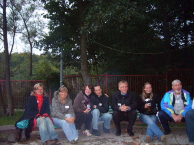 Dorzucam do Twoich zdjęć, Basiu, na razie jedno moje. Od lewej: z fajką - Andrzej, Połówek Elek, w okularach i żółtej bluzie - Charlie, mąż Marylki, luckystar w niebieskiej bluzeczce - luckystar, Marylka z brodą, obok Marylki - Janek w czarnym sweterku - ja, czyli Aleex za mną, widać tylko twarz - kropeczka, czyli Zosia, w żółtej bluzie z czarnym pasem - Marek, mąż kropeczki / Zosi w brązowym żakieciku z aparatem - Ela, kuzynka Baśki w beżowej kurteczce, tyłem - Baśka w szarym swetrze, oparty o balustradę - lajan.