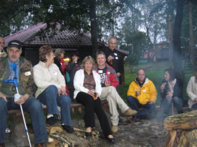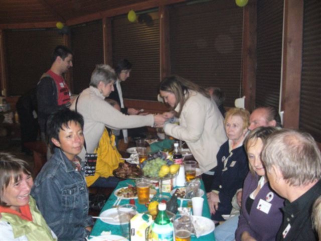 Po oficjalnym powitaniu przez gospodarzy zaczęło się biesiadowanie przy ognisku a póżniej pod wiatą przy suto zastawionych stołach :-)