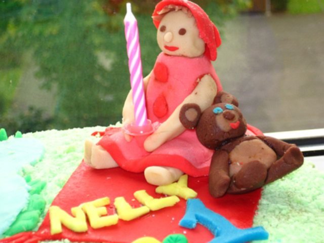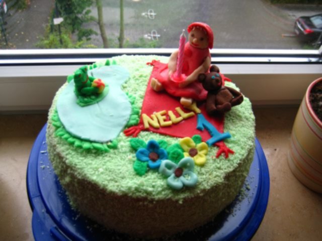 Wczoraj moja cora skonczyla roczek. Zdecydowalam sie na ta mase "sztuczny marcepan" Mialam przykryc nia calego torta ale zdecydowalam ze porobie tylko ozdoby.Oto co mi wyszlo;-D Dziekuje wam za pomoc. Torci wygladal bardzo wesolo i bardzo dobrze smakowal.