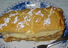 połowa ciasta na blaszkę na to jabłka teraz gorący bydyń i resztę ciasta