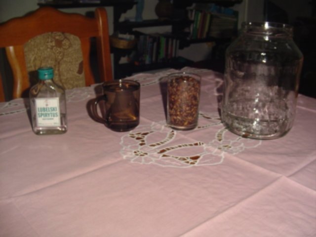 Melduję, że nazbierałem szklankę pestek. Zgodnie z sugestią Bahusa piszę testament a z własnej i nie przymuszonej woli nastawiam nalewkę. Relację fotograficzną wstawię wieczorem, muszę znaleźć kogoś kto wstawi zdjęcia.