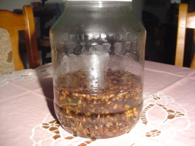 Byłem na działce i wsypałem resztę wysuszonych pestek. Zebrało się 3/4 szklanki razem. Jutro będzie pełna szklanka i postaram się uwiecznić to zdjęciami jak nastawiam nalewkę.