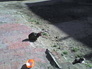 Je, podrzucając, wciągając i w końcu łykając jedzenie, a pije przy pomocy zakupionej ostatnio przez pini1 (z Fundacji) fontanny-poidełka.