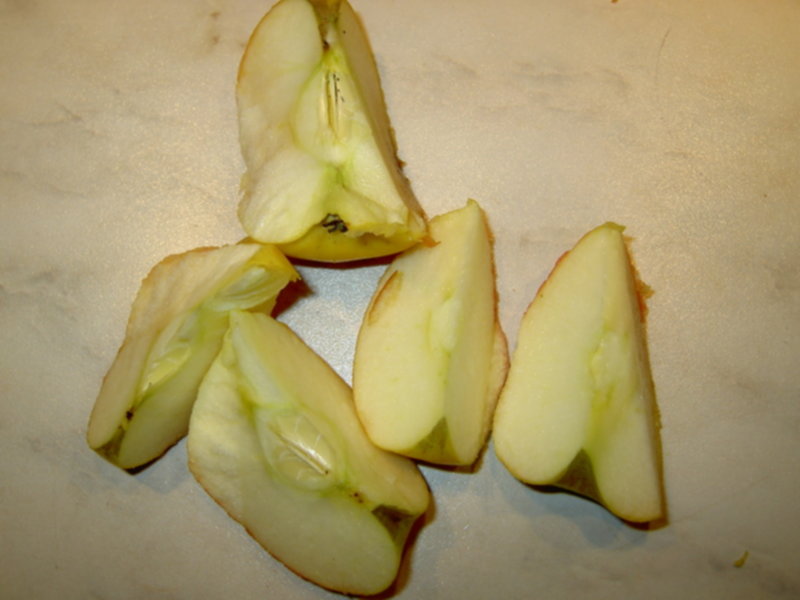 Tutaj jak mi sie trafi jablko z 4 pestkami to swieto !!!! a kupuje Granny Smith nie wiem jak one sie nazywaja po polsku ale sa zielone i nadaja sie swietnie do pieczenia nawet w calosci bo sie nie rozciapuja.