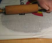za radą Dankarz potraktowałam ciasto wałkiem (w srodku folii), rozwałkowało się znakomicie, na jednakową grubość :)