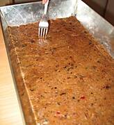 papier z piernikiem wyladował na blaszce, dogniotłam te kawałki , które brakowały w narożnikach i zgodnie z wieloma sugestiami został potraktowany widelcem :)