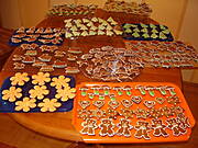 A ja tak "pierniczę", że nie mam czasu na zwołanie apelu...:))) Pierniczki piekę od tygodnia, kuchnia mieni się różnymi kolorami resztek lukru, ozdóbek, itp Pierniczki na stołach, stolikach, parapetach... Z 4 kg mąki już upieczone i jeszcze się pieką... Nawet...ubrania pachną piernikowo....:)))) Muszę kończyć...