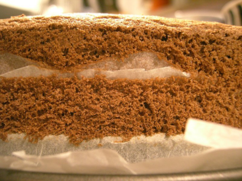Jak zapowiedzialam, tak tez zrobilam.. upieklam dzis maly biszkopt z dwoch jajek, dzielac surowe ciasto na dwie czesci, wkladajac pierwsza na papier do pieczenia, do tortownicy, a na ta warstwe dwa okragle, dokladnie dopasowane arkusze papieru do pieczenia. Na nie druga czesc ciasta. Do piekarnika.. pieklam w termoobiegu.. Wyszlo elegancko :) jestem zadowolona. Nie bylo zadnych problemow z rozdzieleniem tych dwoch czesci biszkoptu. Moze byly nie calkiem idealnie rowne.. ale w sumie bardzo dobry pomysl :) A oto zdjecia: