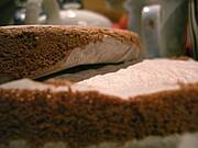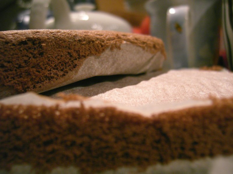 albo piekę wszystko razem a potem robię rowek-znacznik nożem dookoła (a właściwie dwa, jeśli chcę mieć 3 spody), wkładam w rowek nić i ciągnę za oba końce do siebie :) (nić gruba lub żyłka)