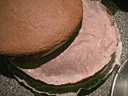 Ciekawy sposób. Ja miałabym do niego tylko jedno zastrzeżenie. Z biszkoptów do tortów ściąga się skórkę, żeby masa dokładnie przylegała do ciasta. Chyba nie chciałabym zdejmować skórki z trzech biszkoptów - wolałabym jednak przekroić jeden na trzy części :) Tym bardziej, że wówczas miejsce cięcia będzie idealnie równe.