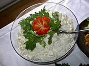 salatka z ziemniakow z majonezem, kwasna , gesta smietana i kaparkami,