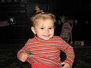 Ajajaj! jak słodko, piękne córeczki! Niech zgadnę - urodę odziedziczyły po mamusi? Moja niunia właśnie zasnęła, zupki troszkę zjadła, rzeczywiście, krupniczek z dodatkiem serka topionego lepiej zniosła :) Zarobiłam jeszcze na chlebek, coś słabo rośnie, ale może jeszcze się rozbuja, w planach bułeczki słodkie drożdżowe, bo po wczorajszych ciasteczkach już zostało tylko wspomnienie a Misiu już węszy za czymś słodkim. No patrzę na to zdjęcie i znów obie myślę o takim małym brzdącu...oj Ulla, ale mi "smaka" narobiłaś na bobaska, hihi! A to moja Izabela, zdjęcie nieco starsze, teraz ma 19 miesięcy, jak zgram nowe zdjęcia to jeszcze coś dokleję :) Fryzura a la szogun :)