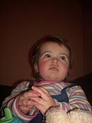 A na dodatek już jej idą ząbki (w każdym razie górne jedyneczki się zbliżają). Gryzaczek w łapce trzyma, ale jeszcze nie na tyle, żeby włożyc go do buzi i złagodzic ból więc ciągle gryzie paluszki:(
