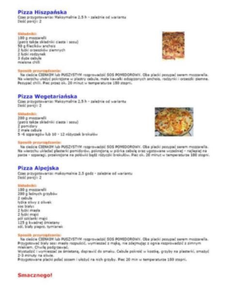 Na dole strony przepisy są udostępnione w formie obrazów, można zapisać na komputerek i przeglądać. Nie ma już potrzeby wysyłania e-mailem.