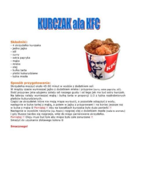 Bardzo proszę o przepisy z KFC.