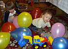 Idzie misio, idzie konik,małpka piesek no i słonik, wszyscy razem z balonami z najlepszymi życzeniami, bo to dzień radosny wielce- masz Olusiu pierwszy roczek